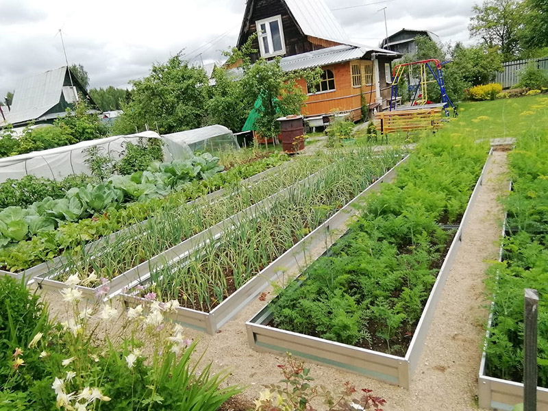 - Экологическая безопасность — оцинкованный металл является нейтральным для почвенных микроорганизмов и растений, не выделяет вредных веществ, что важно для экологически чистого огорода.